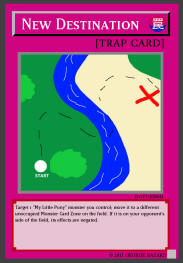 DOTV-EN042: New Destination Normal Trap Target 1 "My Little Pony" monster you control; move it to a different unoccupied Monster Card Zone on the field. If it is on your opponent's side of the field, its effects are negated. Common |
