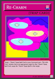 DOTV-EN054: Re-Charm Normal Trap Target 1 "Charm" Equip Spell Card in your Graveyard and 1 "My Little Pony" monster that is an appropriate target for that "Charm" Equip Spell Card; equip the "Charm" Equip Spell to that target. Common |