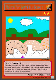 DOTV-EN055: My Little Pony Sweetie Belle Incarnate LIGHT / Pony / Level 2 / ATK 600 / DEF 400 You can Tribute this card; add 1 "My Little Pony Sweetie Belle" from your Deck to your hand. Once per turn: You can add 1 Spell Card from your Deck to your hand that can affect "My Little Pony Incarnate" monsters. It cannot be played this turn. Rare |