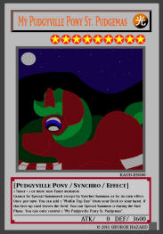 RAOD-EN000: My Pudgyville Pony St. Pudgemas LIGHT / Pudgyville Pony-Type Synchro / Level 9 / ATK 0 / DEF 3600 1 Tuner + 1 or more non-Tuner monsters Cannot be Special Summoned except by Synchro Summon or by its own effect. Once per turn: You can add 1 "Muffin Top Day" from your Deck to your hand. If this face-up card leaves the field: You can Special Summon it during the End Phase. You can only control 1 "My Pudgyville Pony St. Pudgemas". Ultra Rare |