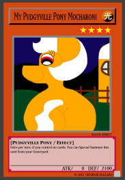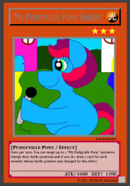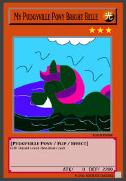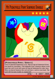 RAOD-EN009: My Pudgyville Pony Surprise Doodle LIGHT / Pudgyville Pony / Level 5 / ATK 0 / DEF 2800 Cannot be Normal Summoned or Set. Must be Special Summoned (from your hand) by controlling 2 "My Pudgyville Pony" monsters whose Levels equal this card's Level and cannot be Special Summoned by other ways. When you Special Summon this card and have 5 cards in your hand: This card's DEF becomes double its original DEF. Common |