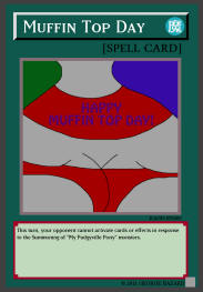 RAOD-EN003: Muffin Top Day Normal Spell This turn, your opponent cannot activate cards or effects in response to the Summoning of "My Pudgyville Pony" monsters. Super Rare |