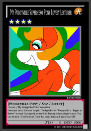 RAOD-EN004: My Pudgyville Superhero Pony Lovely Lecturer LIGHT / Pudgyville Pony-Type Xyz / Rank 4 / ATK 0 / DEF 2000 2 Level 4 "My Pudgyville Pony" monsters Once per turn: You can target 1 "Pudgyville" or "Pudgyville 2 - Bigger is Better" in your Graveyard; activate it. During either player's turn: You can detach 1 Xyz Material from this card; this card gains 600 DEF. Common |