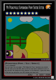 RAOD-EN005: My Pudgyville Superhero Pony Sister Sitter LIGHT / Pudgyville Pony-Type Xyz / Rank 9 / ATK 0 / DEF 4500 2 Level 9 monsters Once per turn: You can target 2 "My Pudgyville Pony" monsters you control with the same Level and DEF; their Levels becomes their combined Levels. If this card has "My Pudgyville Pony Chatrina" as Xyz Material, it gains this effect. ● This face-up card gains 2000 DEF during your turns only. Super Rare |
