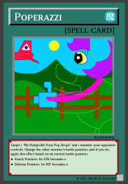 RAOD-EN011: Poperazzi Normal Spell Target 1 "My Pudgyville Pony Pop Drops" and 1 monster your opponent controls; Change the other monster's battle position, and if you do, apply this effect based on its current battle position. ● Attack Position: Its ATK becomes 0. ● Defense Position: Its DEF becomes 0. Common |