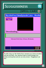 RB02-EN008: Sluggishness Quick-Play Spell The DEF of face-up "My Chubby Pony" monsters you control is doubled until the End Phase. Your opponent takes no battle damage from battles involving them and you can only activate 1 "Sluggishness" per turn. Common |
