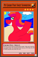 RB02-EN013: My Chubby Pony Sweet Summertime LIGHT / Chubby Pony / Level 4 / ATK 800 / DEF 2000 This face-up card cannot be destroyed by battle. If this card is selected as an attack target, the attacking monster loses 500 ATK. Halve the ATK of WATER monsters that battle this card. Common |
