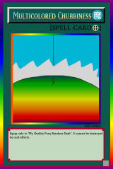 RB02-EN015: Multicolored Chubbiness Equip Spell Equip only to "My Chubby Pony Rainbow Dash". It cannot be destroyed by card effects. Rainbow Rare |