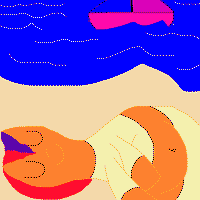 Hair: Red and purple Eyes: Dark blue Body: Light orange Personality: Hates the cold, stays inside all winter Fun Fact: She used a tanning bed to stay warm when the power went out one winter! |
