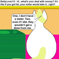 Hi. What's your deal with money? It's like if you got fat, your sister
