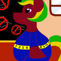 Hair: Green and gold Eyes: Dark pink Body: Dark red Personality: Arrogant Fun Fact: Her attitude comes from when she was a filly and saw many inaccuracies from the town she lived in! |
