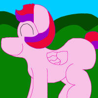 Hair: Red and purple Eyes: Fuchsia Body: Light pink Personality: Makes graphic designs, fun loving, often excited for Valentine's Day Fun Fact: Sometimes she'll even give out stickers of her graphics to other ponies! |