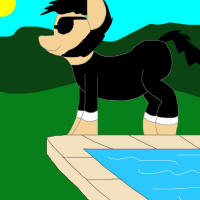 Outside Link: DeviantART: My OC Pony Eduardo Outside Description: Eduardo near his house's swimming pool. |