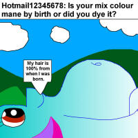 Is your mix color mane by birth or did you dye it? A1: My hair is 100% from when I was born. |
