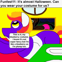 A4: This is my blueberry costume. I know it's not super fancy but I'm