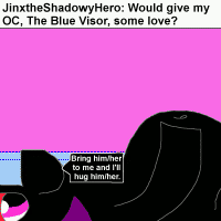 JinxtheShadowyHero: Would you give my OC, The Blue Visor, some