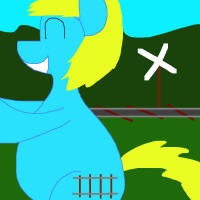 My OC Pony Puffy Fluff | DeviantART: My OC Pony Puffy Fluff | Puffy Fluff in his backyard with his large train set. |